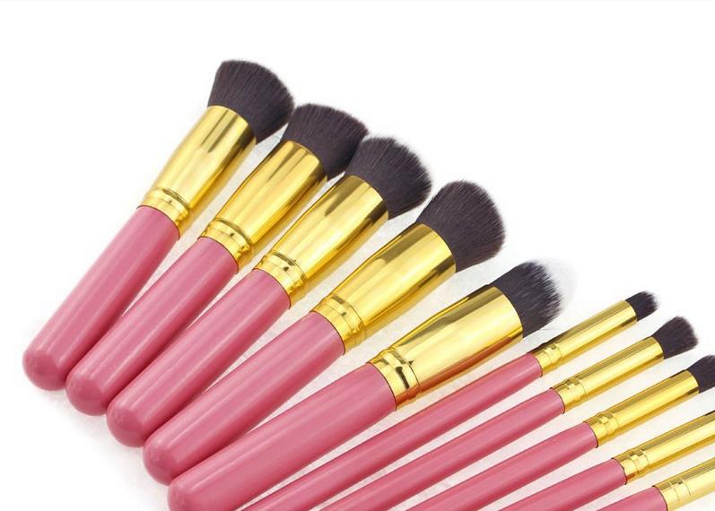 10 st. Rosa / Guld Make-up / sminkborstar av bästa kvalité
