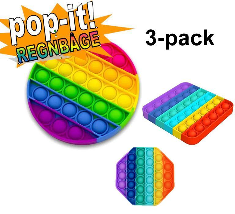 3-pack Pop It Fidget Toy Original – Regnbåge – CE Godkända