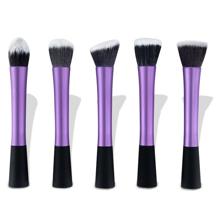 Foundation brush 5-pack. Ett perfekt set för att lägga en foundation makeup, allt du behöver i ett pack. Foundation brush set 5-pack innehåller 5 olika foundation penslar, tillverkad av de finaste syntet materialet och är ca: 16 cm långa. Foundation brush set 5-pack innehåller: 1 st Foundation borste – Rak 1 st Foundation borste – Sned 1 st Foundation borste – Stippling 1 st Foundation borste – Rundad 1 st Foundation borste – Setting