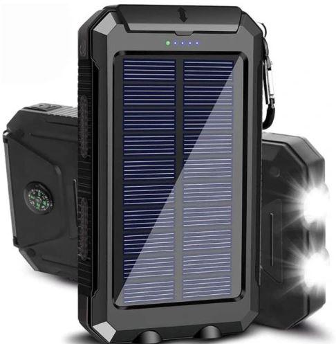 New Powerbank med Solceller – 20.000 mAh – Svart