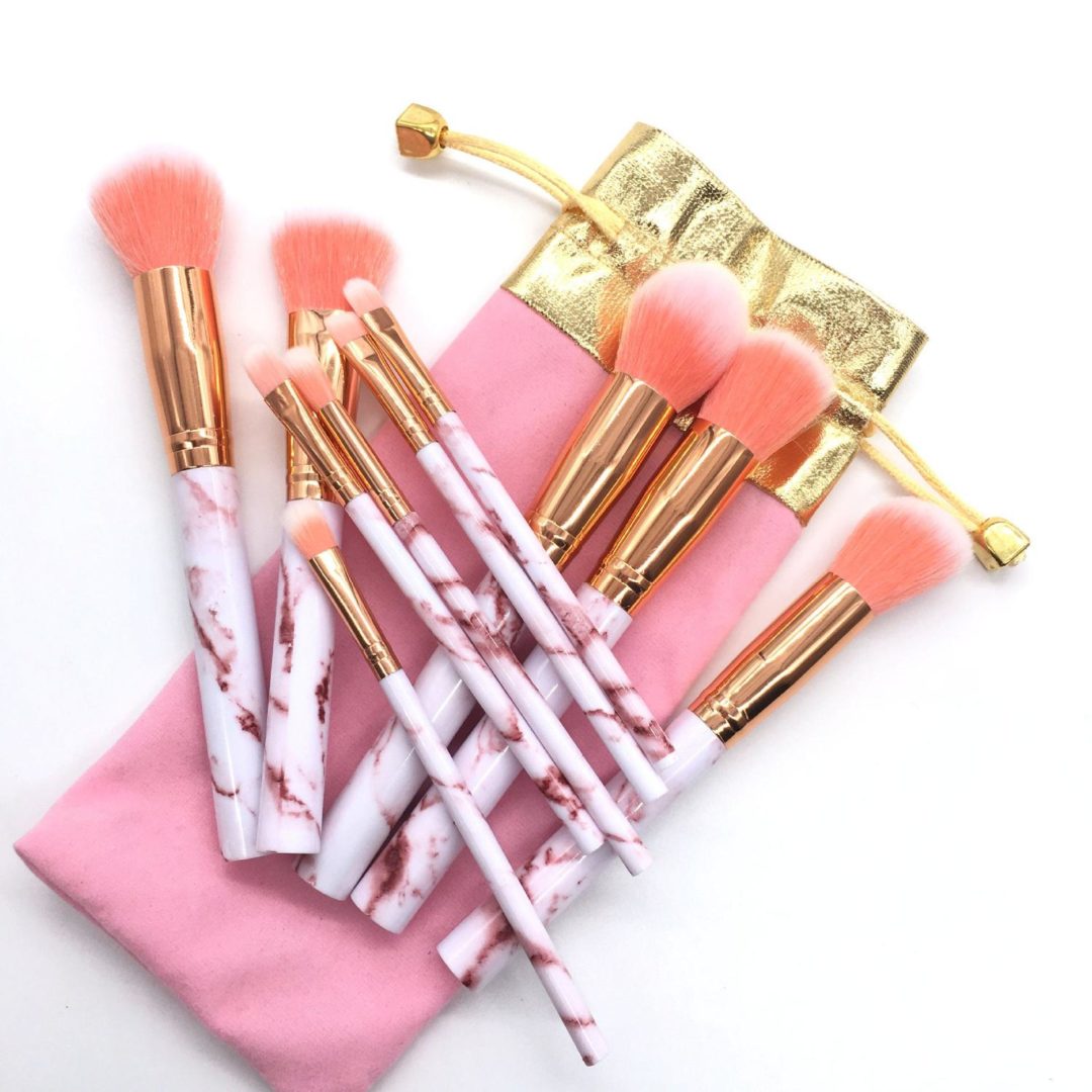 Ett set med 10 st. sminkborstar som kan användas både till professionellt bruk och till vanlig hemma sminkning. Underbart marmor skaft! Snygg förvarings påse.