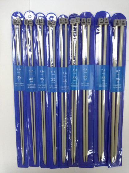 Ett helt set med jumperstickor i aluminium, som är ett nöje att sticka med. Spetsarna blir gradvist spetsigare, vilket gör stickorna ideella till alla sorters garn och projekt. Den lätta vikten gör stickorna komfortabla att använda och du kan sticka i timmar utan att få ont i händer och fingrar. Stickornas längd är: 35 cm. Storlekar: 3.0mm/3.5mm/4.0mm/4.5mm/5.0mm/5.5mm/6.0mm/7mm/8mm/9mm/10.0mm